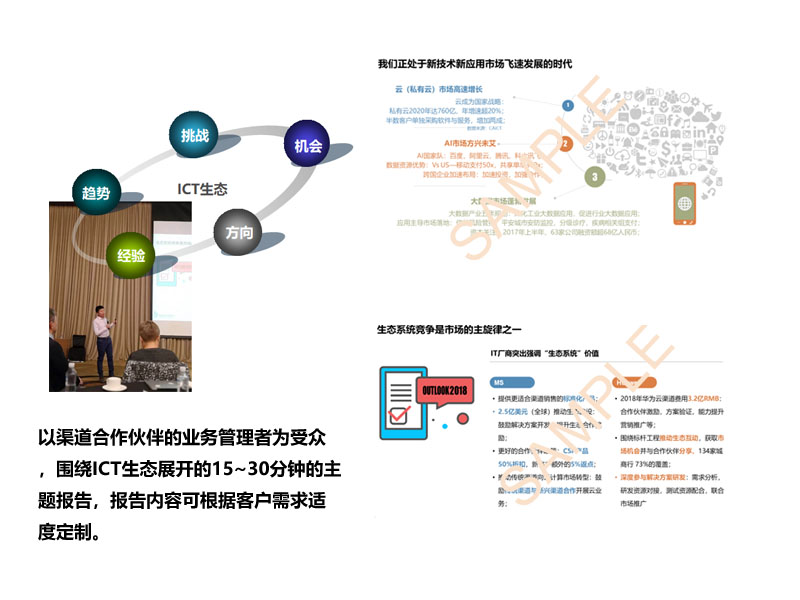 圍繞生態(tài)建設(shè)實(shí)務(wù)為客戶提供的專項(xiàng)服務(wù),包含生態(tài)機(jī)會(huì)定向挖掘基礎(chǔ)服務(wù)、生態(tài)機(jī)會(huì)定向挖掘標(biāo)準(zhǔn)服務(wù)、渠道會(huì)議主題內(nèi)容輸出、小型生態(tài)研討會(huì)組織及內(nèi)容輸出等。